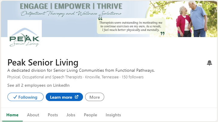 Follow Us on LinkedIn! Be sure to check out our newly launched PEAK Senior Living LinkedIn page and follow us to stay up-to-date on all that’s happening. From client success stories to helpful resources, there’s something for everyone. If you are exploring contract outpatient therapy, contact PEAK for a complimentary consultation. Visit our website to learn more about our contract outpatient therapy and wellness solutions.