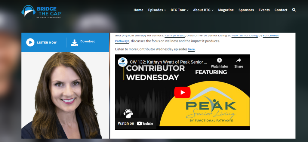 PEAK Senior Living’s Divisional Vice President Kathryn Wyatt appeared on the Bridge The Gap podcast to discuss how PEAK supports seniors’ wellness and enhanced quality of life.